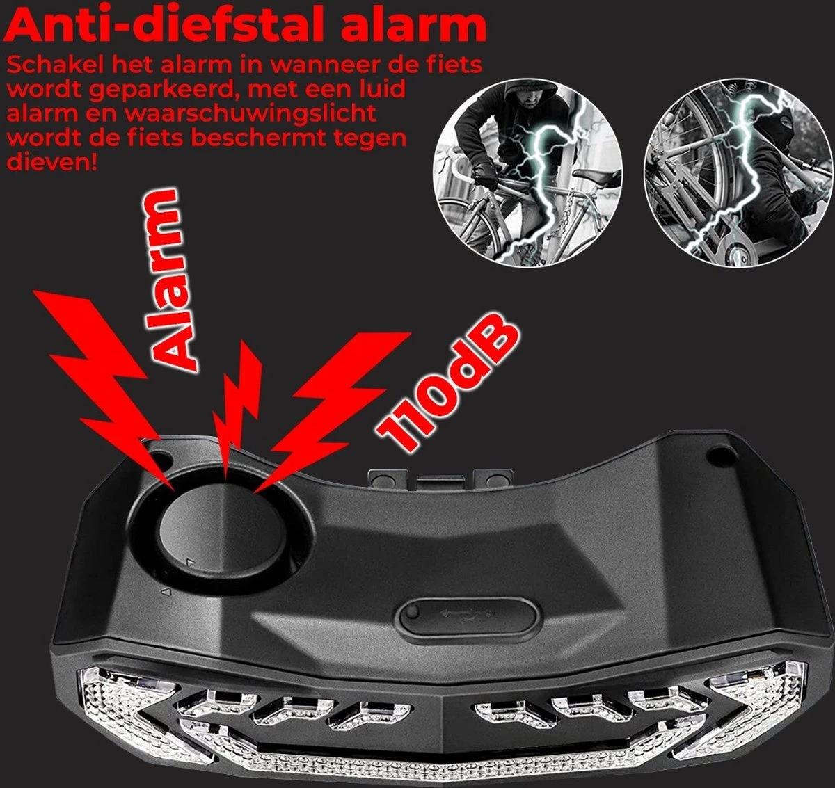 De B-care Elektrische Fietsverlichting is een van de weinige fietslichten met diefstal alarm. Door op de afstandbieding te kiezen voor vergrendeling, wordt het alarm geactiveerd. Het alarm heeft maarliefste 110dB en wordt geactiveerd wanneer er beweging wordt gevoeld. Vanaf nu is zorgen maken over een gestolen fiets verleden tijd!