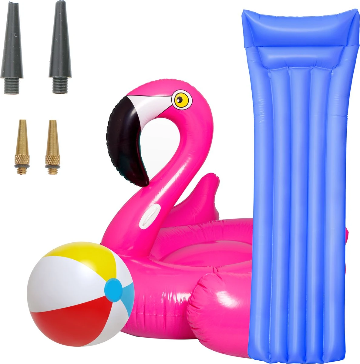 - Conische verloopnippels: 2 soorten, voor het opblazen van ride-ons, strandballen, luchtbedjes en meer waterspeelgoed. Je ontvangt 2 keer een kortere van goudkleurig staal en 2 keer een langere van zwart kunststof.