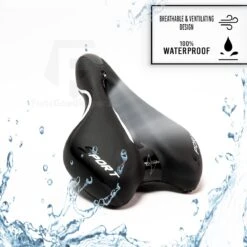 Voltano Dames Fietszadel – Zwart – Uitsparing – Waterdicht – Elastomeer Vering – Gratis Zadelstrop