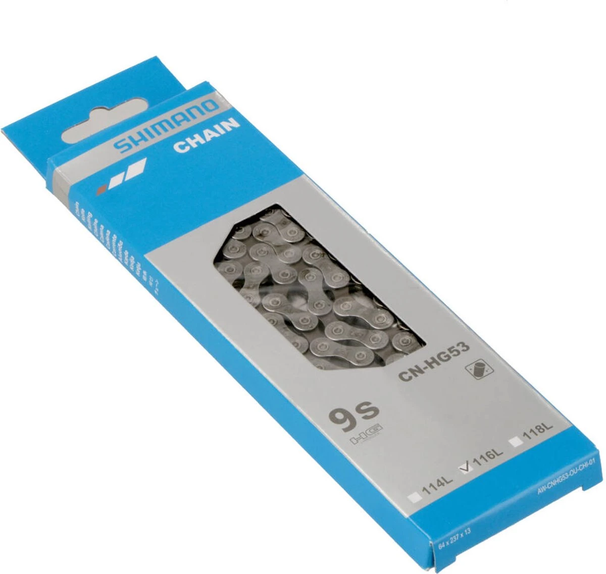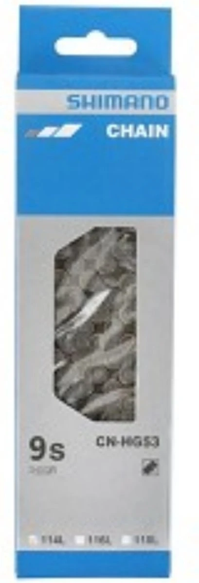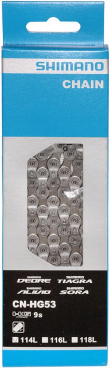 | Verpakkingsinhoud | Ketting Shimano HG53 9V 11/128" Zilver 116 Sch. |