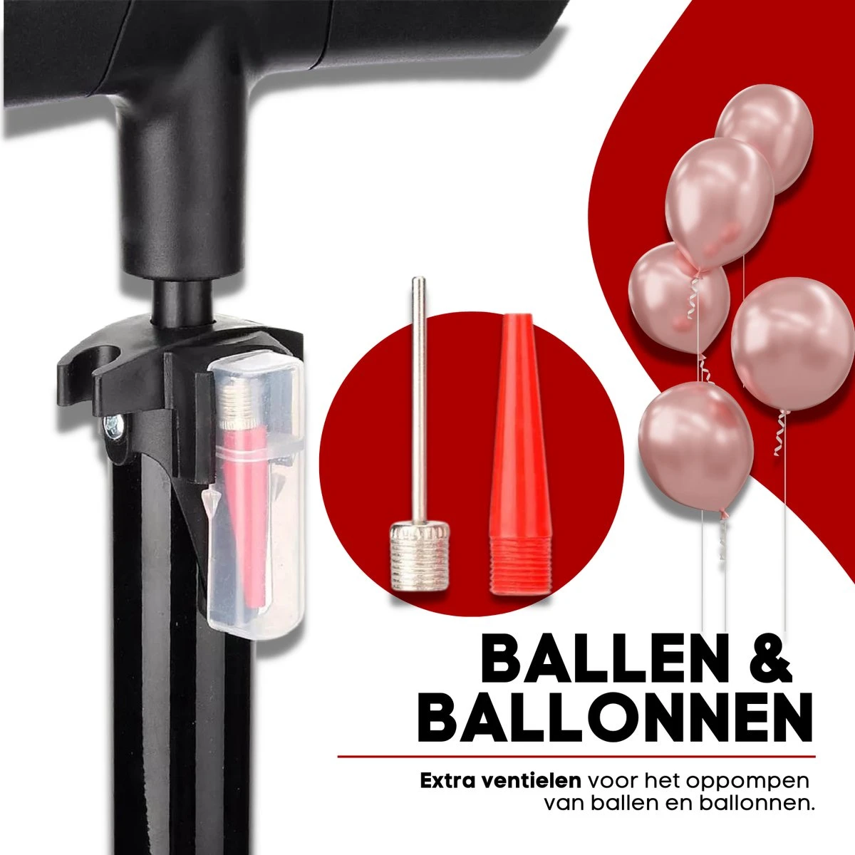 – Extra ventielen voor ballen en ballonnen