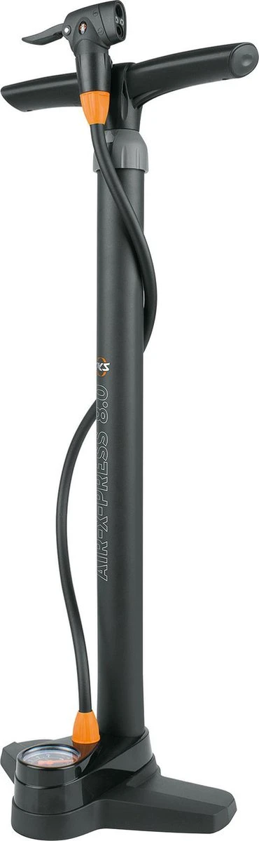 Air-X-Press 8.0 van SKS is de opvolgers van de succesvolle Air X-Press. een robuuste en lichtgewicht fietspomp en is geschikt voor meerdere ventielen. De vloerpomp beschikt over een gemakkelijk afleesbare manometer met aanduiding voor bar en PSI. Verder is de Air-X-Press zeer gebruiksvriendelijk door gebruik van een ergonomisch hendel. Bovendien is deze vloerpomp 50mm hoger dan zijn voorganger. Dankzij de hoge maximale druk en multifunctionele pomp hoofd is de SKS vloerpomp uitermate geschikt voor de mountainbike en racefiets. SpecificatiesRobuuste en lichtgewicht fietspompVentiel aansluitingen: Sclaverand Presta, Dunlop en Auto SchraderUitermate geschikt voor mountainbike en racefiets.Inclusief manometerMaximale druk: 8 bar / 15 PSIMateriaal: PlasticKleur: ZwartDe meeste pompen zijn geschikt voor alle soorten ventielen. Hierbij worden onderscheiden:Schrader (AV) – Autoventiel, wordt veelal gebruikt bij mountainbike en heeft een druknippel aan de binnenzijdePresta (FV) – Frans ventiel, ziet u meestal bij race en toerfietsen en heeft een vergrendelde druknippel aan de binnenzijdeDunlop (HV) – Hollands ventiel, is vanouds het meest gebruikte ventiel. Deze bestaat uit een stalen buisje zonder druknippel